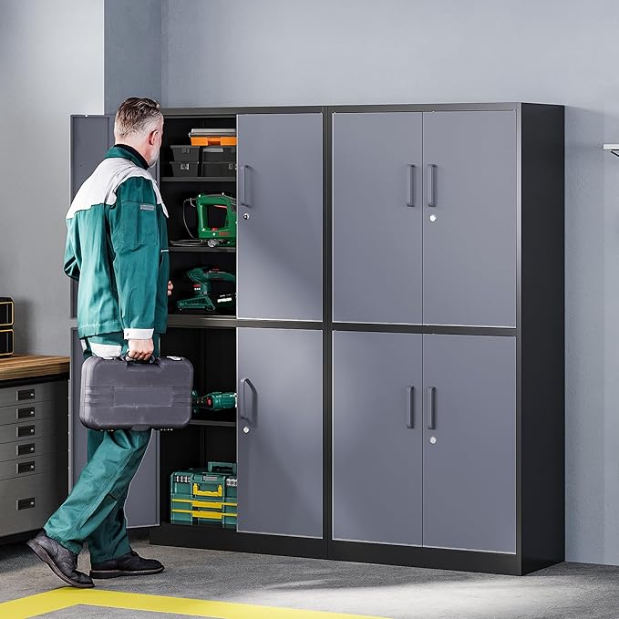 Letaya Metal Storage Cabinets with Lock Door and Shelves, Steel Garage Tool Cabinets for Home,Office, Warehouse,Lockers(71"-Black Gray)