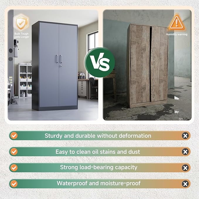 - Durable Metal Material: Letaya metal storage cabinet is made up of 0.8mm steel ,rugged and not easily deformed, plate adopted environmentally powder coated finish, moisture proof ,capacity to resist corrosion and rust