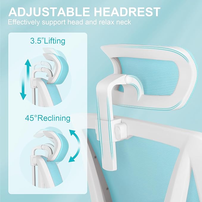 Misolant Ergonomic Office Chair with Footrest, Ergonomic Desk Chair with Adjustable 2D Lumbar Support, High Back Computer Chairs with Adjustable Headrest, Blue Comfortable Executive Office Chair