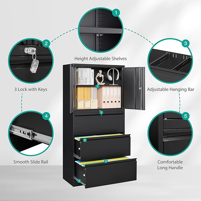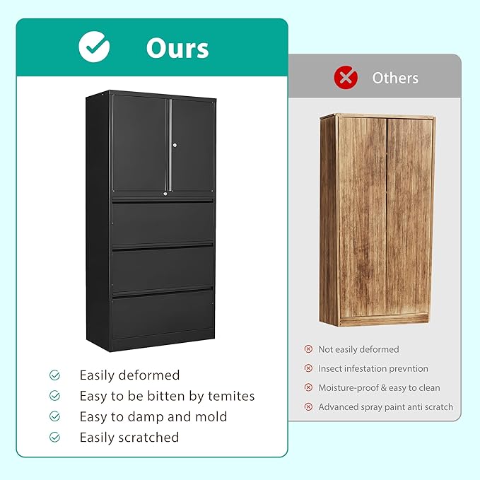 - 【Heavy File Cabinet】: Metal file cabinet has a strong and durable metal frame with excellent load-bearing capacity, allowing you to store enough items. Weight Capacity: 480 lbs total, the cabinet has 4 shelves, each shelf holds: 180 lbs