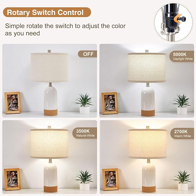 GyroVu 3 Color Temperature Small Table Lamp for Bedroom, Bedside Desk Reading Lamps, 21.5" Nightstand Ceramic Lamp for Kids Room, Living Room, Dorm, Home Office, Bulbs Included