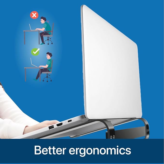 - Stable Design - The laptop stand is made of high-quality aluminum alloy, making the stand both lightweight and rock-solid. Thanks to its open design, the laptop riser has good ventilation which reduces overheating of your laptop. Furthermore, the stand features non-slip sillicone pads that ensure your laptop remains stable and firmly in place.