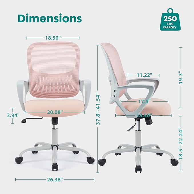 - 【Comfortable Experience】 - This desk chair adopts the new high-quality and high-resilience sponge cushion, which is soft and comfortable. Meanwhile, it has ergonomic lumbar back support to reduce back pain brought by sedentary. Additionally, the seat back of the office chair is made of breathable and elastic mesh, enabling users to keep refreshing.