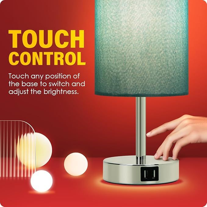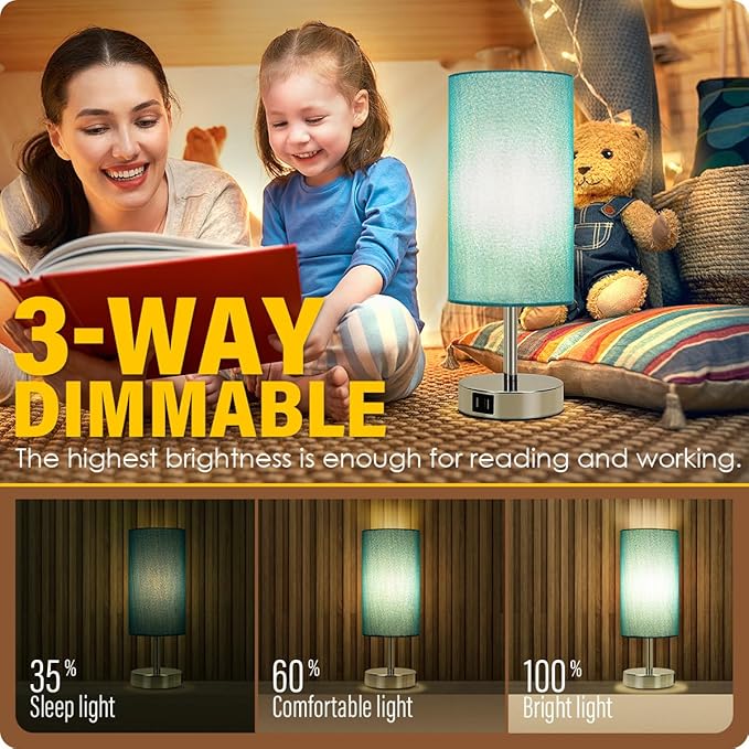 - ✔️【3 WAY SMOOTH DIMMABLE TOUCH CONTROL】- The dimmable bedside table lamp offers 3 level brightness options (Low, Medium, High). Just simply tap on anywhere of the metal base to adjust the lighting to meet your different needs. Nightlight for a steady sleep or nursing. Accent lighting for a warm mood. Proper high comfortable brightness for studying or working. Super handy to operate.