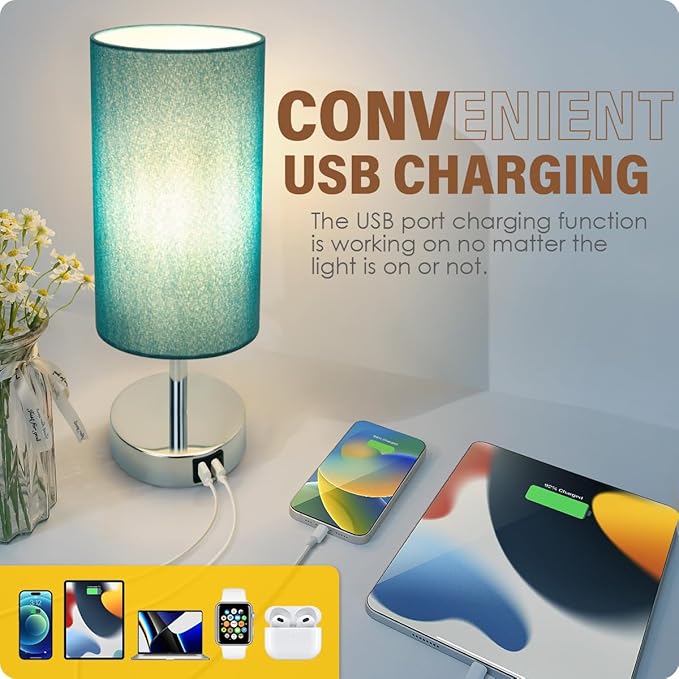 - ✔️【PRACTICAL USB CHARGING PORTS】- The Yarra-Decor USB Table Lamp features two built-in USB charging ports (5V/2.1A) that allow you to charge your mobile phones, kindles, headsets, diffuser, speakers, or other electronics while the lamp is on or off. It's perfect for those who need to charge their devices in their bedroom or office.