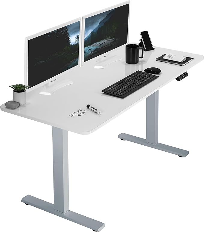 VIVO Electric Dry Erase 60 x 24 in Standing Desk, Memory Height Adjustment, 1B Series, Whiteboard Top Gray Frame, DESK-KIT-1G6WE