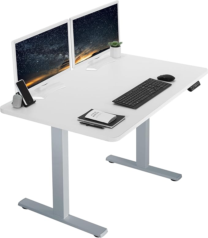 VIVO Electric 48 x 30 in Standing Desk, Memory Height Adjustment, 1B Series, One-Piece White Top, Gray Frame, DESK-KIT-1G5W