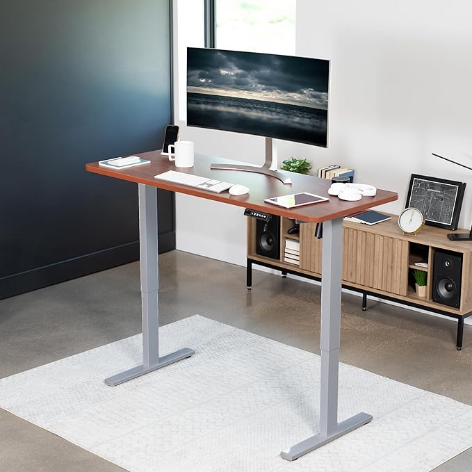 VIVO Electric 60 x 24 in Standing Desk, Memory Height Adjustment, 1B Series, One-Piece Dark Walnut Top, Gray Frame, DESK-KIT-1G6D