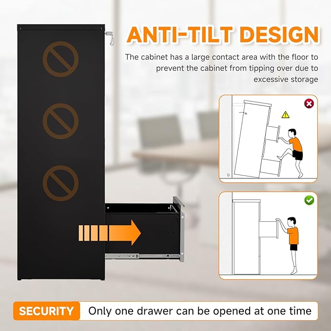 - 💖【Metal Vertical File Storage Cabinet】This file cabinet can lock 4 drawers at the same time with one lock, and is equipped with 2 keys. With an anti-tilting mechanism, when one drawer is opened, the interlocking system prevents the other drawer from opening, thereby preventing tipping and protecting your safety.