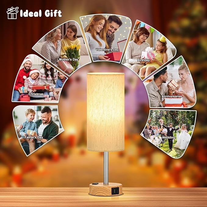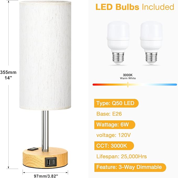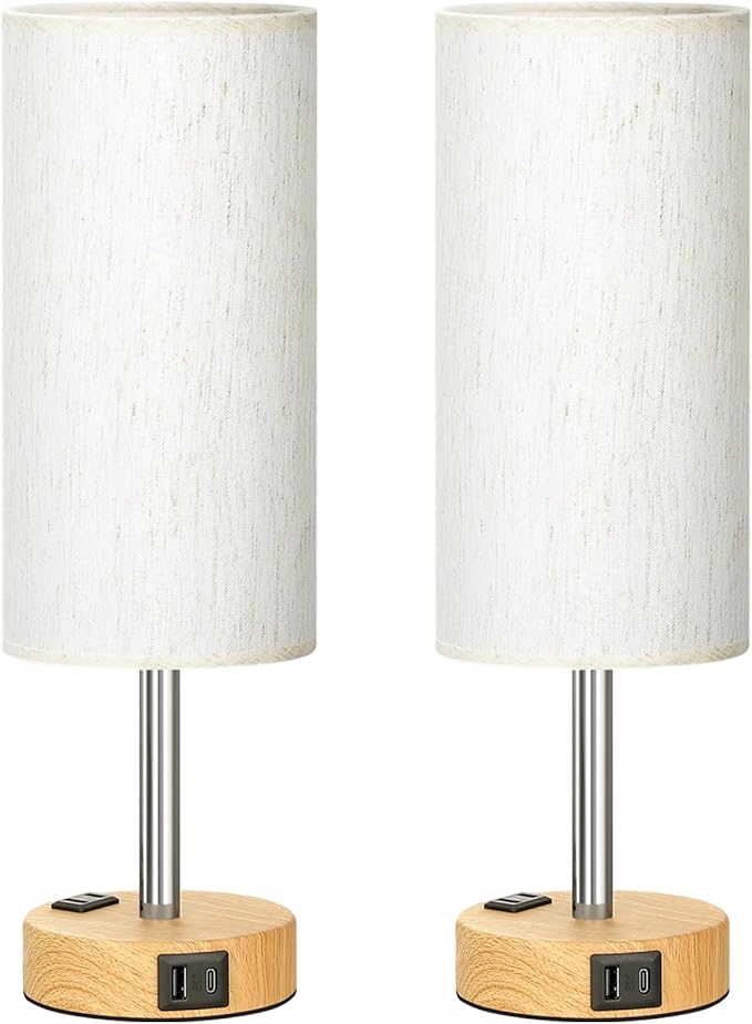 - 4. Plug and Play End Table Lamp - Package included 2 E26 led light bulbs, 2 install-free flaxen fabric shades, 2 stable lamp bodys and 2 touch control metal bases with wooden finishing. Put all together for the side table lamp is really perfect to decorate anywhere of your house. The ideal lamps with usb ports and outlets for bedroom, guest room, living room, study room, kids room for girls and boys, office room, desk, etc. at the same time
