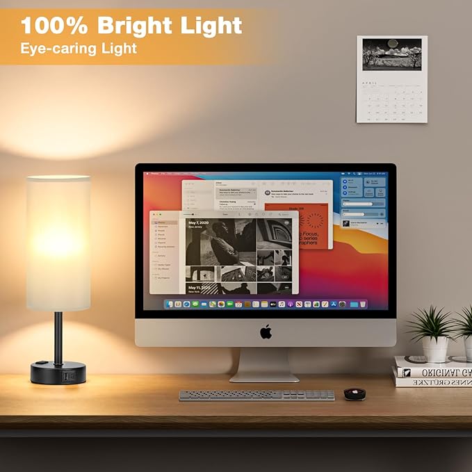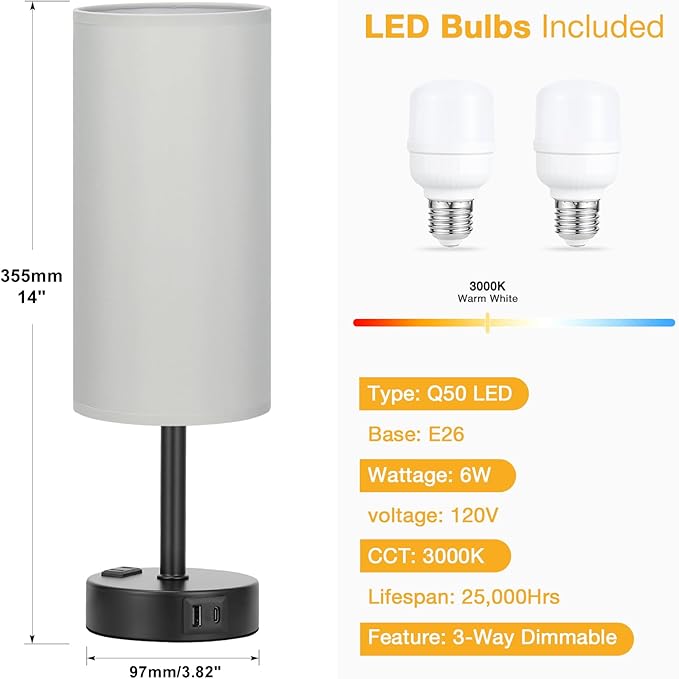- 3. 6W LED Bulbs Included - For saving you more time on finding a correct bulb, we particularly pair with 2 non-flicker E26 LED light bulbs (worth $18). Unlike other dazzling side table light lamp, our modern small touch lamp provides no-flickering lights, to protect you and your kids and family's eyes from eye strain, or eyesight damages.