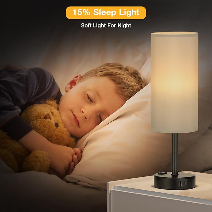 - 4. Plug and Play End Table Lamp - Package included 2 E26 led light bulbs, 2 install-free flaxen fabric shades, 2 stable lamp bodys and 2 touch control black metal bases. Put all together for the side table lamp is really perfect to decorate anywhere of your house. The ideal lamps with usb ports and outlets for bedroom, guest room, living room, study room, kids room for girls and boys, office room, desk, etc. at the same time.
