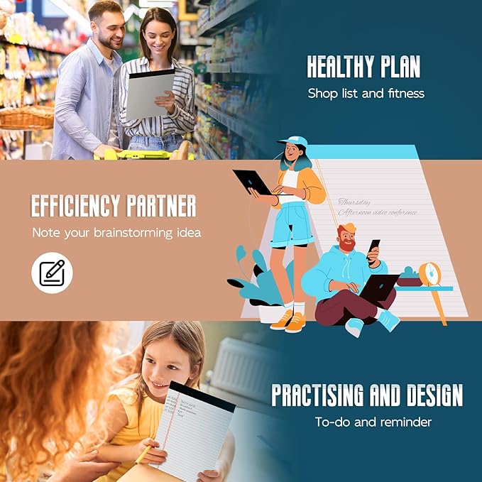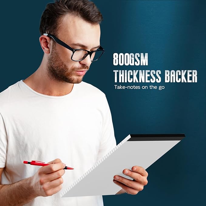 - 【Good Quality Legal Pads】The white legal pads 8.5"x 11" made of 70g paper material, thicker than average writing pads. Legal notepads 8.5"x 11" letter lined paper pads has black lines and double red margin lines on left, the sturdy cardboard back allows the pen to slide smoothly, enjoy a smooth writing experience in everyday paper use and prevent ink from being left on the back or indented writing on the next sheet of paper. Suitable for a variety of pens.