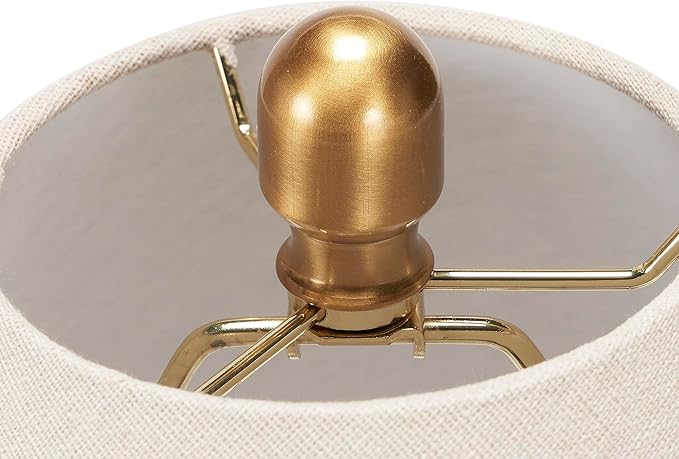 - MINIMAL ASSEMBLY: Brass finial & harp included (red bag inside box). Must attach finial, harp and shade to the base