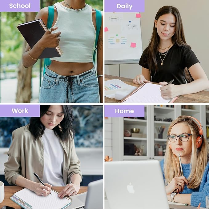 - HARDCOVER SPIRAL NOTEBOOK: Package includes a spiral notebook with 220 pages and the size is 5.5"x7.5", standard college ruled paper with 7.1mm spacing, 100gsm which avoids ink bleeding and can give you a good writing experience.