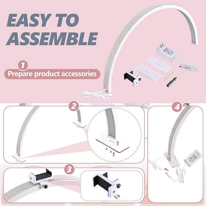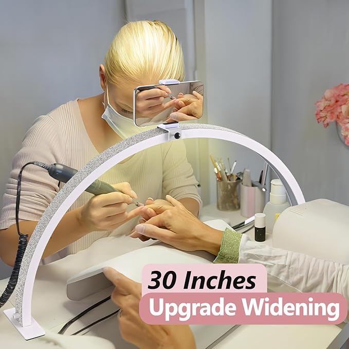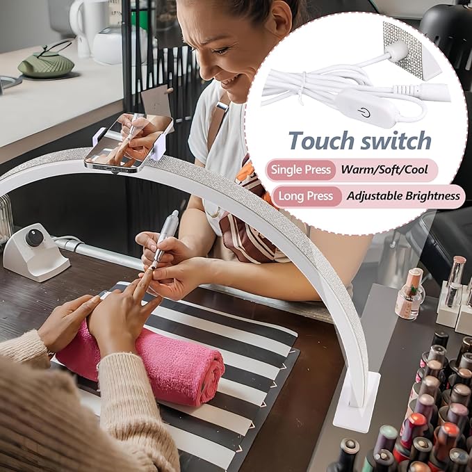 Half-Moon Nail Desk Lamp, Upgrade 30 Inches Lash Light for Eyelash Extensions, 3400 Lumen Led Light for Nails,Tattoo Artists, Adjustable Brightness Warm, Soft, Cool