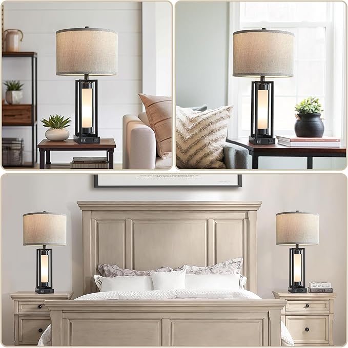 - ❤【Modern Design Table Lamp】Elevate your space with our table lamp that combines a sleek black metal frame with a white glass nightlight, creating a contemporary focal point that complements a variety of décor styles, including modern minimalist farmhouse vintage mid-century.