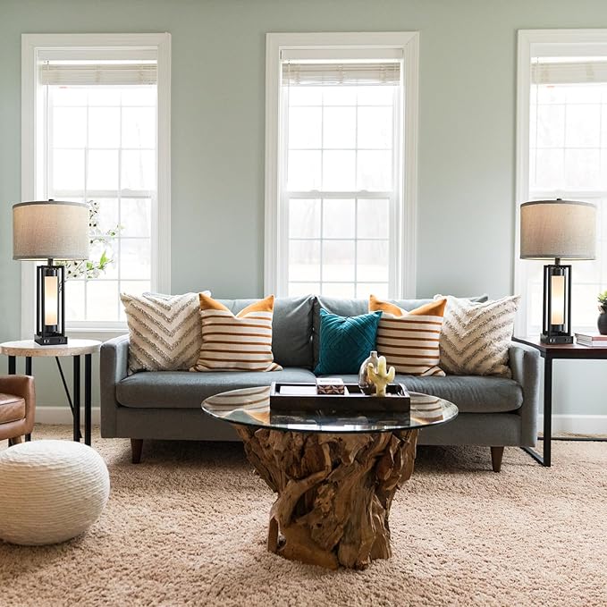 RORIANO Set of 2 Modern Table Lamp for Living Room with 2 USB Ports, Contemporary Nightstand Lamp with White Glass Night Light, Retro Desk Lamp for Bedroom Bedside, 4 Bulbs Included (Balck)