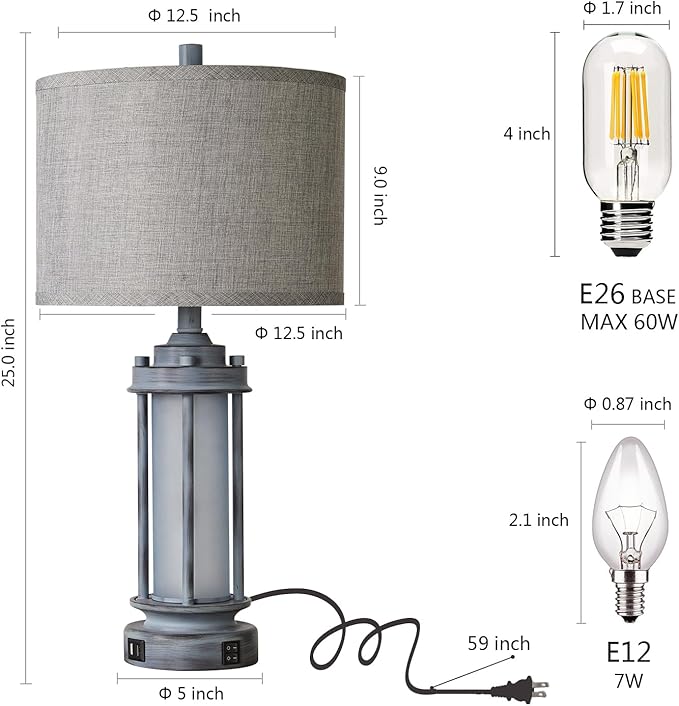 - Practical Dual USB Charging Ports:The end table lamp comes with two 5V 2.1A USB fast charging ports, which can charge 2 electronic devices at the same time, such as mobile phones, computers, Ipads, headphones and so on. The USB charging ports work even when the lamp is turned off, bringing you and your family more convenience in life