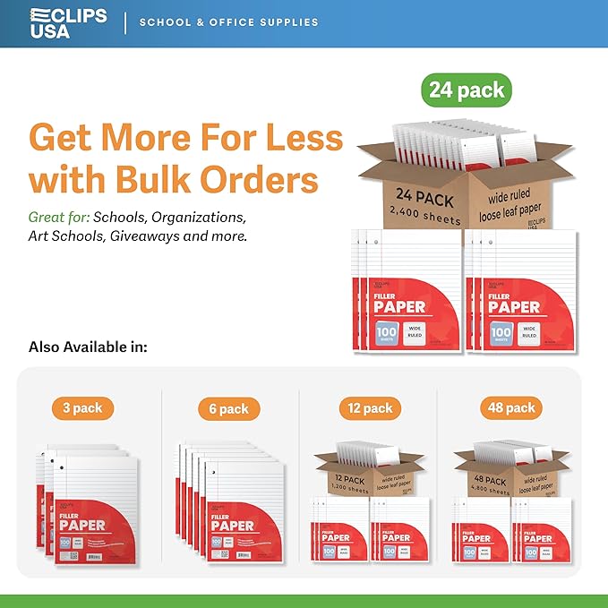 - COMES IN PACKS OF100 - No need to count out loose leaf paper to distribute to your students or office, 100 sheets per pack are the perfect count for distribution.
