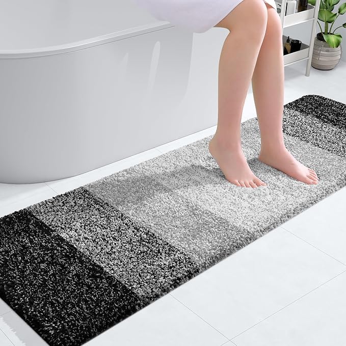 OLANLY Bathroom Runner Rugs 59x17, Extra Soft Absorbent Microfiber Bath Rugs, Rubber Backing, Quick Dry, Machine Washable Bath Mats for Bathroom Floor, Tub and Shower, Home Decor Accessories, Black