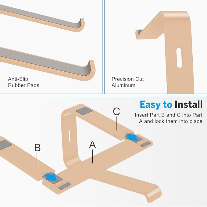 OMOTON Laptop Stand, Detachable Laptop Mount, Aluminum Laptop Holder Stand for Desk, Compatible with MacBook Air/Pro, Dell, HP and All Laptops (11-16 inch), Gold