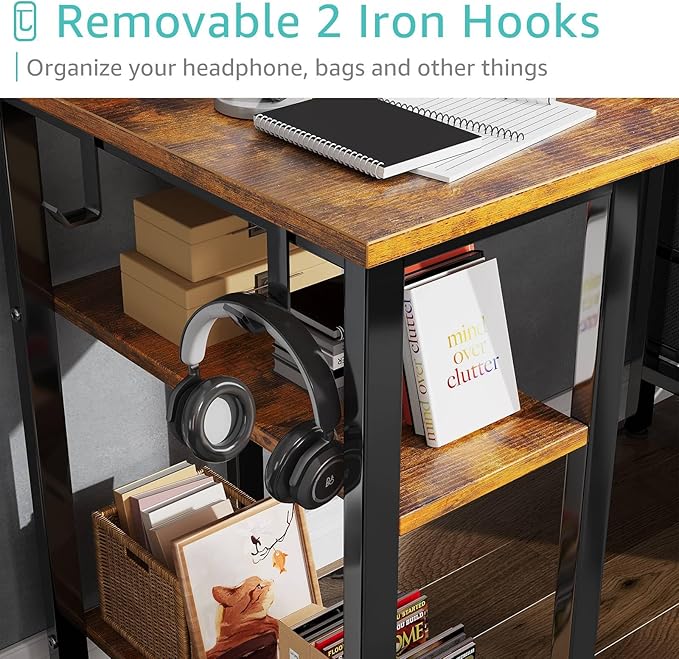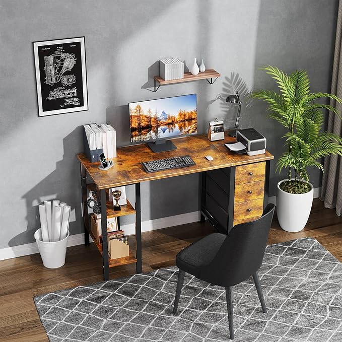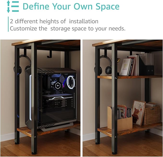 - Vintage Style Design: Computer desk with 2 storage shelves and 4 ππππ§ππ πΏπ§ππ¬ππ§π¨ with wooden front, you can try this two installation methods (left or right), and the shelves have two different heights of installation, you can customize the storage space to your needs. This desk is made of thick P2 particle wood board with scratch-resistant, anti-collision and waterproof, protect home office desk surface from daily wear and tear.