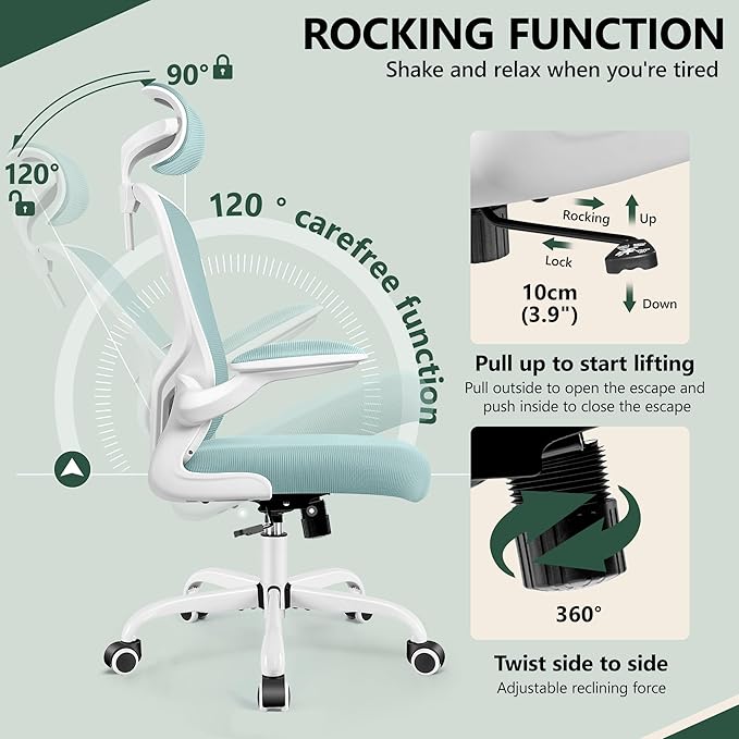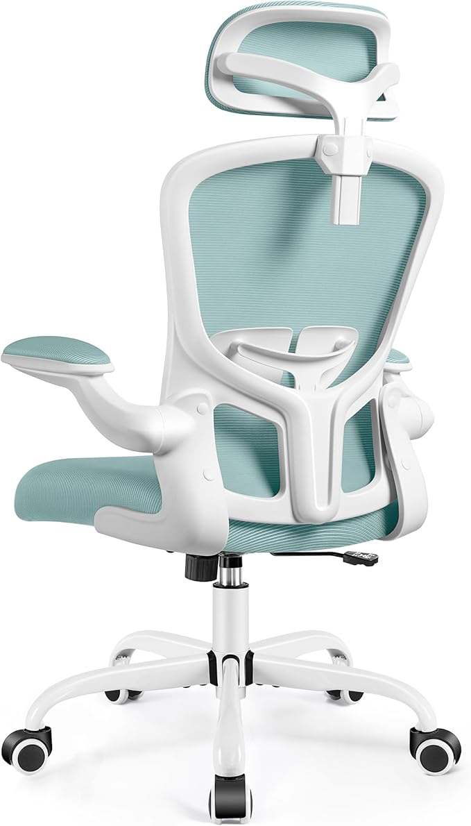 FelixKing Ergonomic Office Chair with Adjustable High Back, Breathable Mesh, Lumbar Support, Flip-up Armrests, Executive Rolling Swivel Comfy Task Computer Chair for Home Office (Light Blue)