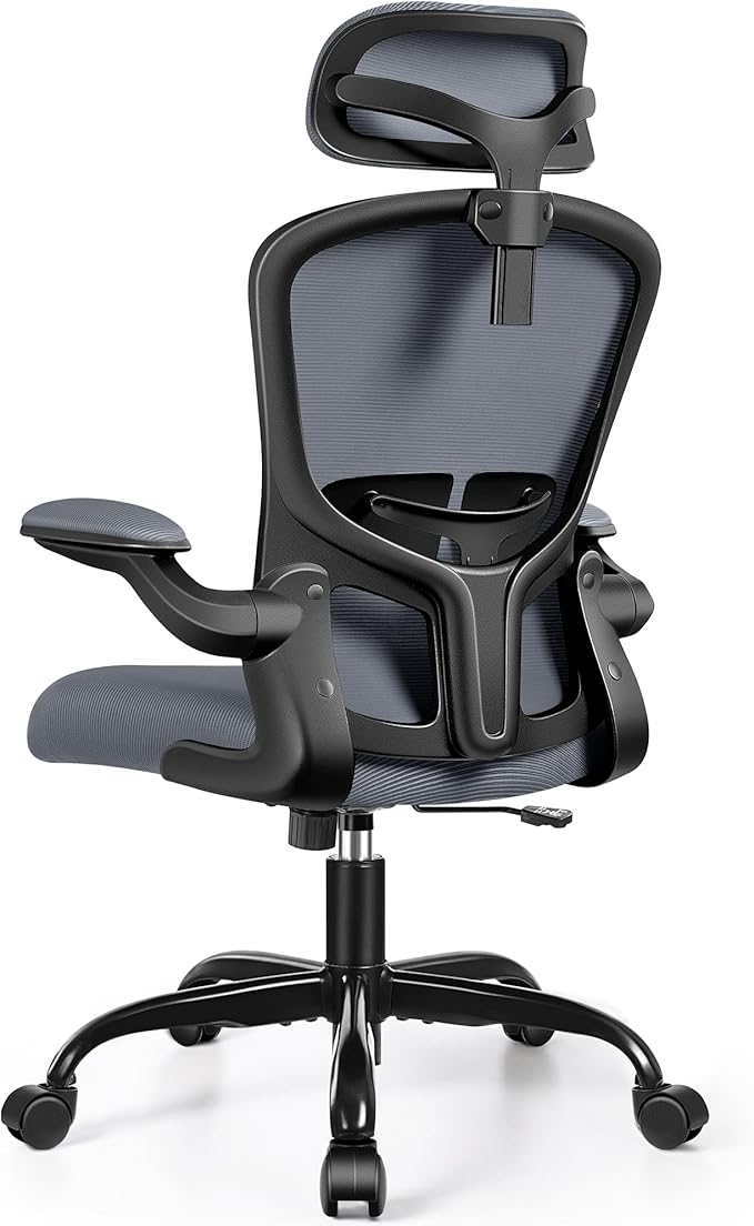 FelixKing Office Desk Chairs, Ergonomic PC Desk Chair with Wheels, Adjustable Lumbar Support and Height, Swivel Computer Chair with Flip-up Armrests, Ergo Mesh Backrest for Working (Dark Gray)