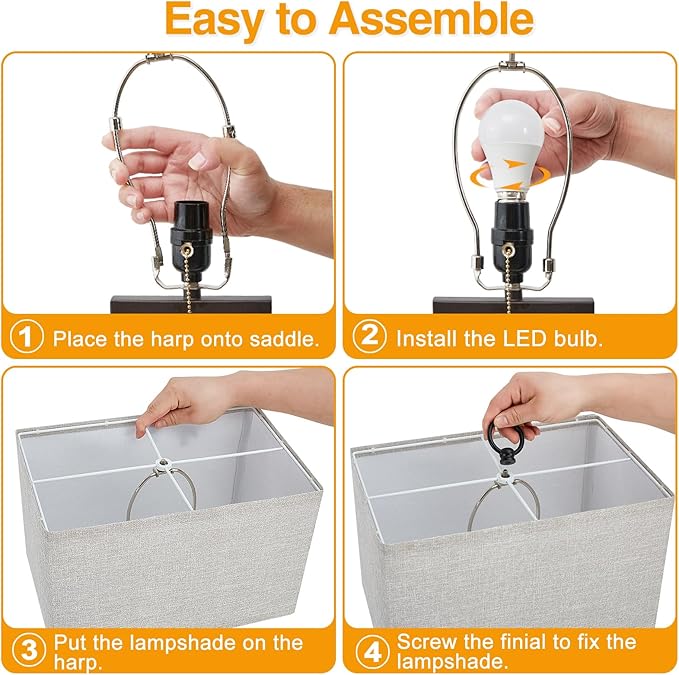- 【Simple Assembly & Pull Chain】 The bedroom lamps feature a convenient pull-chain switch for easy operation. Assemble in minutes: attach the pole, secure the shade with included rings, and insert the bulbs. Perfect for table lamps for living room or bedside lamps set of 2