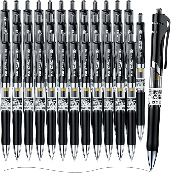- Great value:M&G 36 Pack Retractable Black Gel Ink Pens are ideal for school, office and home use.These fine point gel ink pens are suitable for journal, note taking, journal,dairy writing and more.