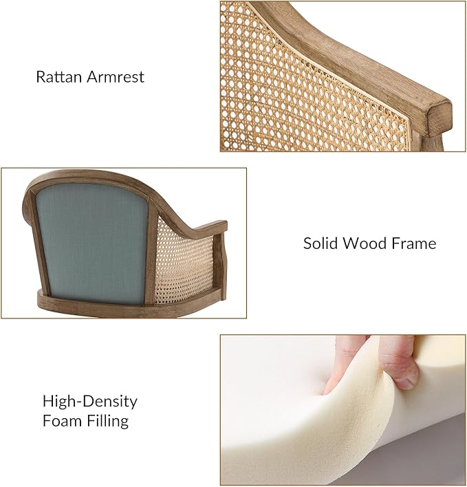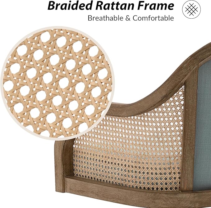 - Farmhouse Rattan Weave: Airy caned barrel back adds mid-century farmhouse charm and wraparound support for extended comfort.