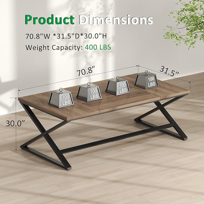 - 【Large Size Desktop】 31.5"D x 70.8"W x 29.9"H, 52 lbs weight, 400 lbs capacity. This large writing desk offers a huge amount of space for dual monitors, printer as an executive desk or a gaming table, making it a great choice for home office, including writing, gaming, and studying. In addition, the extra large long table can be used as a conference table or a large workstation for two person.