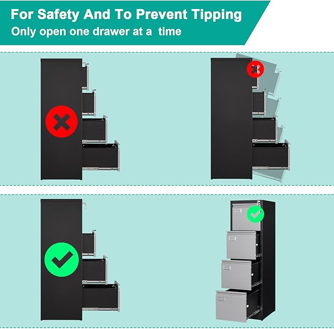 - ✔️☆【Anti-tilt Mechanism】: All drawer interlocking mechanisms are designed to prevent tilting and ensure that only one drawer can be opened at a time; the file cabinet has 1 lock and 2 foldable keys to effectively protect your private documents and valuables. It is suitable for various scenes such as offices,
