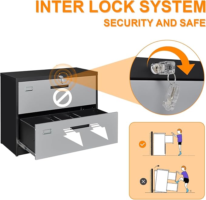 - SECURITY AND ANTI-TIP DESIGN: Metal filing cabinets are equipped with a built-in anti-tip system and folding key locks to secure files and prevent tipping by opening only one drawer at a time.