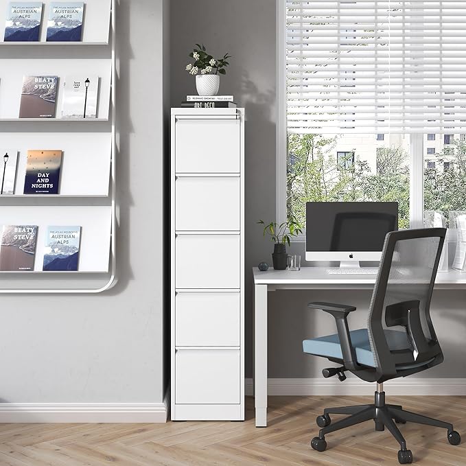 - 【5 Drawer Full-Extension File Cabinet】The slender rectangular silhouette with a clean white finish, this file cabinet is not only a practical storage solution but also adds a stylish touch to any home or office setting. Suitable for office, study room, bedroom, living room, etc.