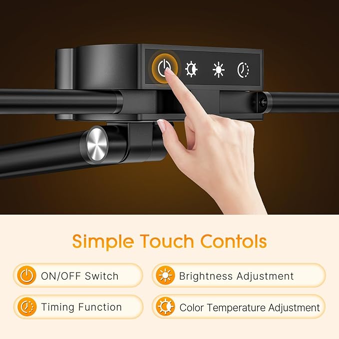 - š®š± šš¶š“šµš š š¼š±š²š & š„š¼šš®šÆš¹š² šš¼š¶š»šš - The desk light provides you 25 light modes with 5 levels of brightness and 5 color temperatures (3000-6000K), you can adjust it to you desired lights as you wish by the touch control. Designed with a flexible well-controlled joints and 180° foldable swing arms, the desk lamp allows to direct the light to anywhere you need.