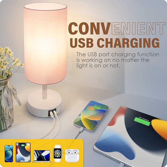- ✔️【PRACTICAL USB CHARGING PORTS】- The Yarra-Decor USB Table Lamp features two built-in USB charging ports (5V/2.1A) that allow you to charge your mobile phones, kindles, headsets, diffuser, speakers, or other electronics while the lamp is on or off. It's perfect for those who need to charge their devices in their bedroom or office.