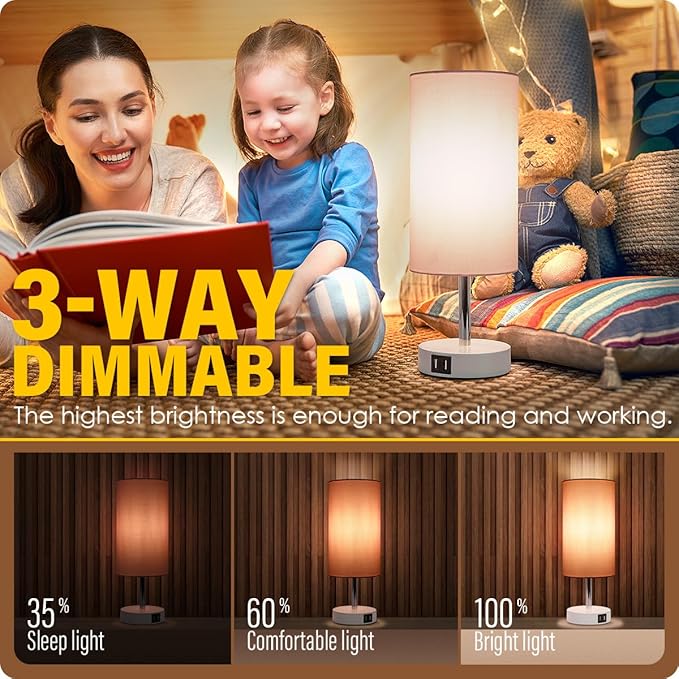 - ✔️【3 WAY SMOOTH DIMMABLE TOUCH CONTROL】- The dimmable bedside table lamp offers 3 level brightness options (Low, Medium, High). Just simply tap on anywhere of the metal base to adjust the lighting to meet your different needs. Nightlight for a steady sleep or nursing. Accent lighting for a warm mood. Proper high comfortable brightness for studying or working. Super handy to operate.