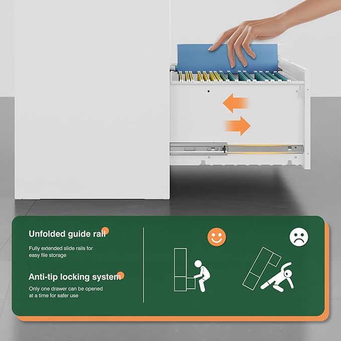 - 〖Document Storage Security〗One key to lock all drawers,each drawer can hang A4/F4/Letter/Legal and other file types;Each drawer can hang at least 150-300 files,drawer dimensions: 32.5"WX15"DX9.8"H.