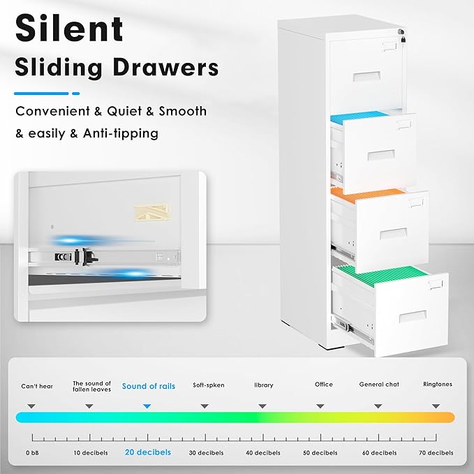 - 🗄️【Easy to Assemble】: With ball bearing full extension drawer slides, the file drawers opens completely, allowing you to access the contents in the back of the office file cabinet easily and quietly. ★Kindly reminder★: The four drawer file cabinets will be easy to assemble with following the installation video. if you're still having trouble, we'd be happy to help, just get in touch!