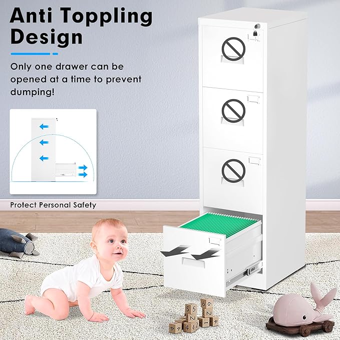 - 🗄️【Lockable Vertical File Cabinet】: Our office filing cabinet with lock keys and features a interlock system that secures all drawers at once and keeps your important documents safe and secure while you are away from your workspace. With all drawers interlocking mechanism design, it will prevent tipping.