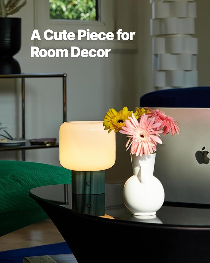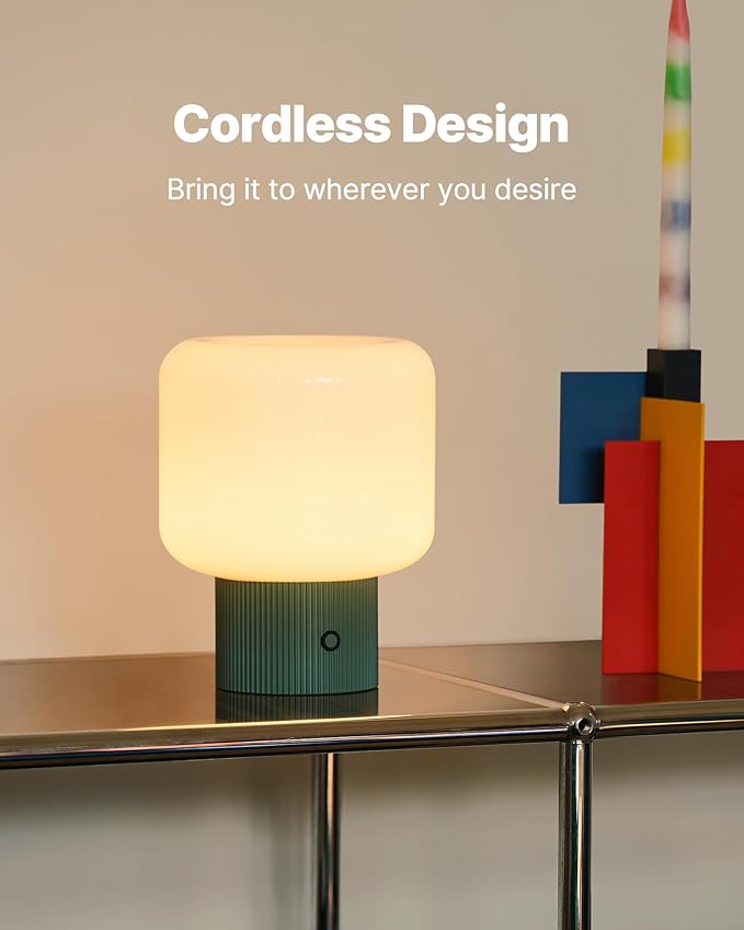 - Opal Glass Shade & Sturdy Metal Base: Crafted with a white opal glass lampshade, this small table lamp beautifully showcases the soft and calming quality, while its vintage metal striped base ensures both durability and stability; Additionally, the mushroom lamp's smooth surface not only enhances its visual charm but also simplifies maintenance and cleaning; Designed with portability in mind, this cordless table lamp allows you to take it wherever you desire with ease