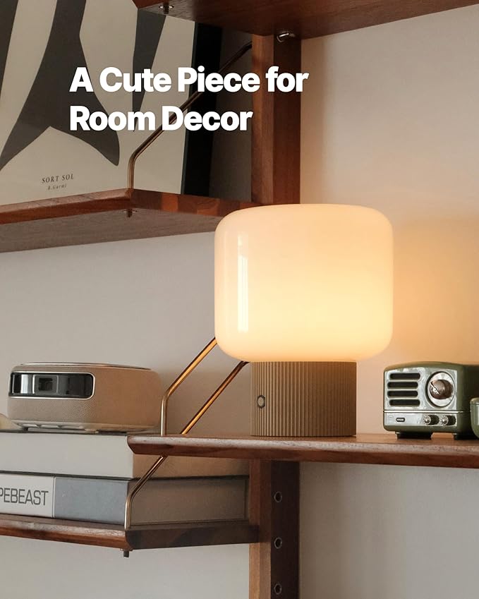 - Opal Glass Shade & Sturdy Metal Base: Crafted with a white opal glass lampshade, this small table lamp beautifully showcases the soft and calming quality, while its vintage metal striped base ensures both durability and stability; Additionally, the mushroom lamp's smooth surface not only enhances its visual charm but also simplifies maintenance and cleaning; Designed with portability in mind, this cordless table lamp allows you to take it wherever you desire with ease