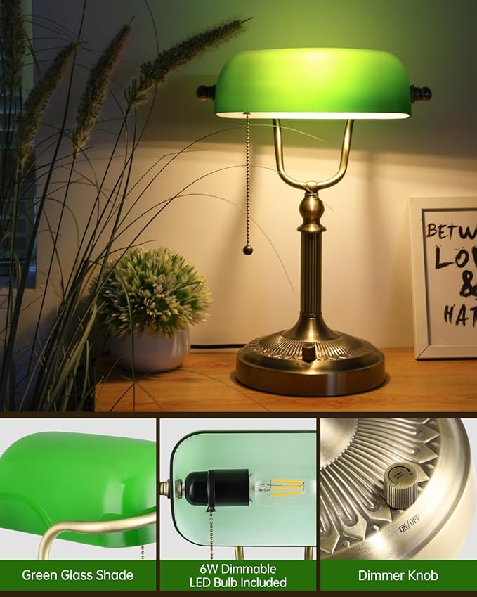 - 【E26 Bulb Included】Bankers Lamp approx. Size:14.57 Inch x 11.02 Inch ; E26*1 LED bulb included(T45-6W,2700K)