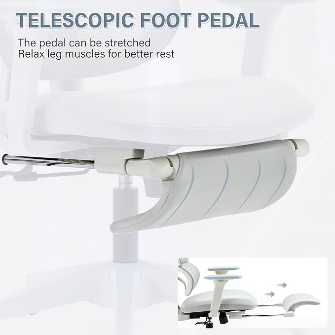 - 【Cozy Footrest for Relaxation】Enjoy ultimate comfort with our retractable footrest/leg rest, providing solid support. Whether you're taking a break from work or study, simply lean back in your chair, place your legs on the footrest, and enjoy a refreshing nap or some leisurely phone activities