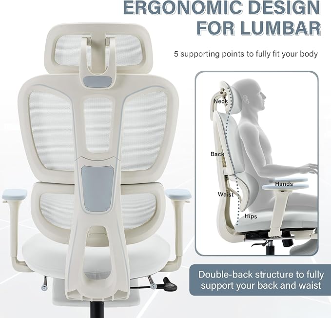 - 【Ergonomic Excellence Chair】Our mesh office chair boasts a double-back structure, providing simultaneous support to both the backrest and lumbar region. Experience unmatched comfort as the chair offers full-body support, perfectly contouring to your body when leaning back. Embrace ergonomic excellence for a healthier and more comfortable work environment