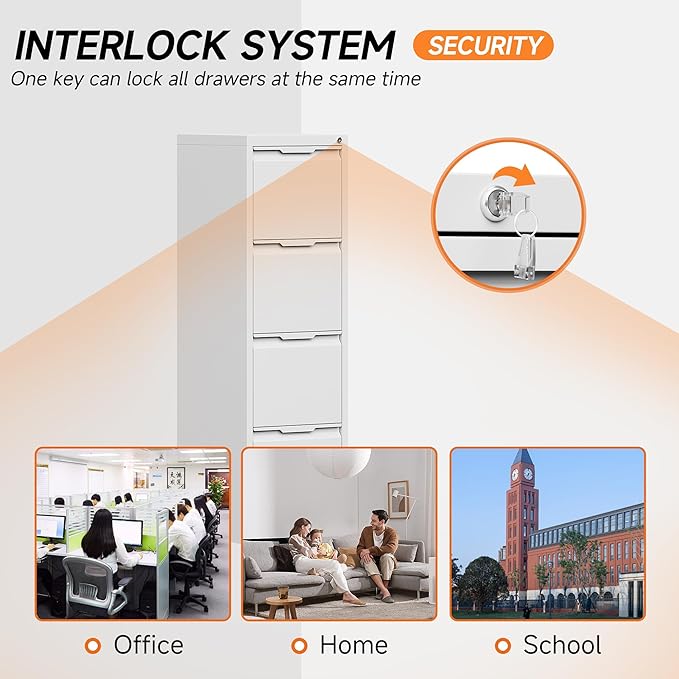 - [Strong And Durable] The filing cabinet is made of high-quality cold-rolled board, which makes the locking filing cabinet stronger and less prone to deformation and damage. Vertical file cabinet is made oRugged powder coating, strong adhesion, high toughness, easy to clean and not easy to rust.
