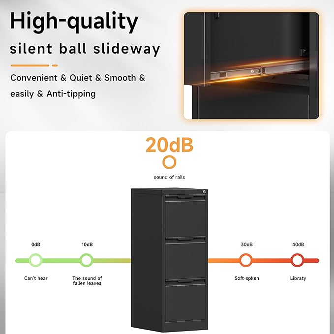 - 🛎️【SMOOTH MUTE SLIDE RAILS】: Our metal file cabinets are made with full retractable mute slide rails, open and close smoothly, easy to pick up and put down folders without noise. Perfect for office, home and school use. And the vertical appearance design can maximize the effective use of space, so that your space is not wasted!