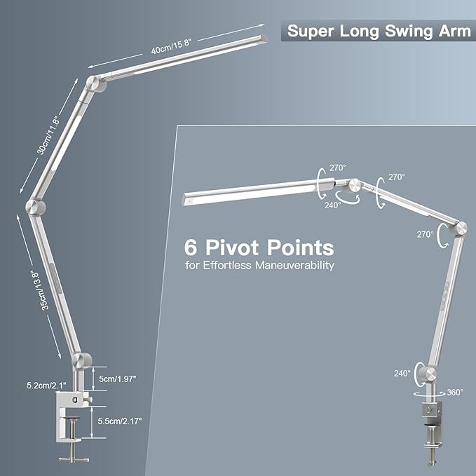 - True eye-caring clamp desk lamp. Featuring advanced lighting technology, Fresnel optical lens and eye protection light source, double care for your eyes. High color rendering index (CRI>95) for the most accurate color presentation